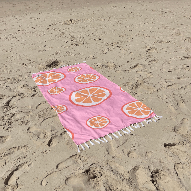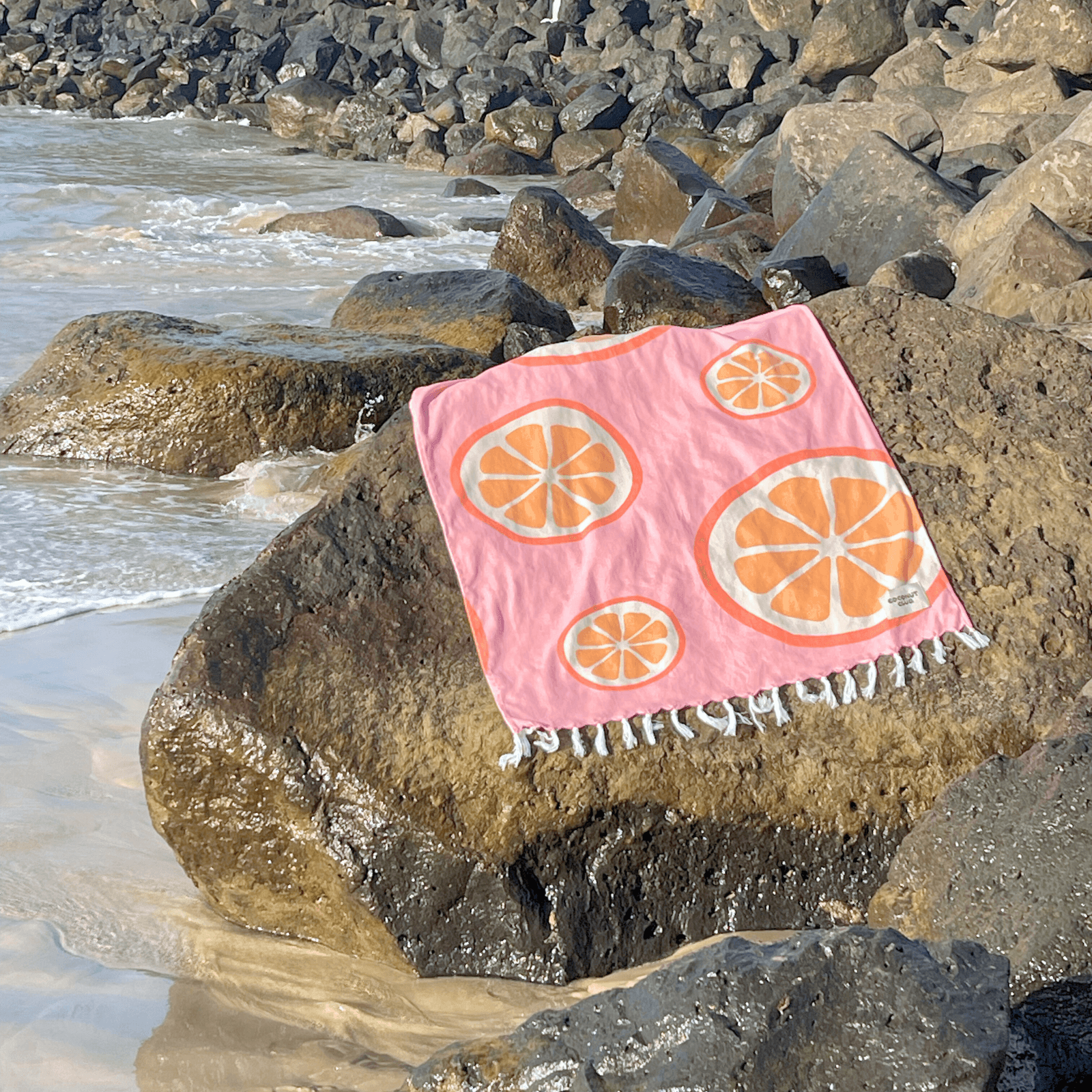 Sun soaked citrus fields and warm coastal breezes, our Sun Kissed Citrus Turkish Towel brings a burst of summer to your beach days. With its bold, retro inspired orange print, this towel evokes the simple joy of fresh oranges, perfect for those long days under the sun.